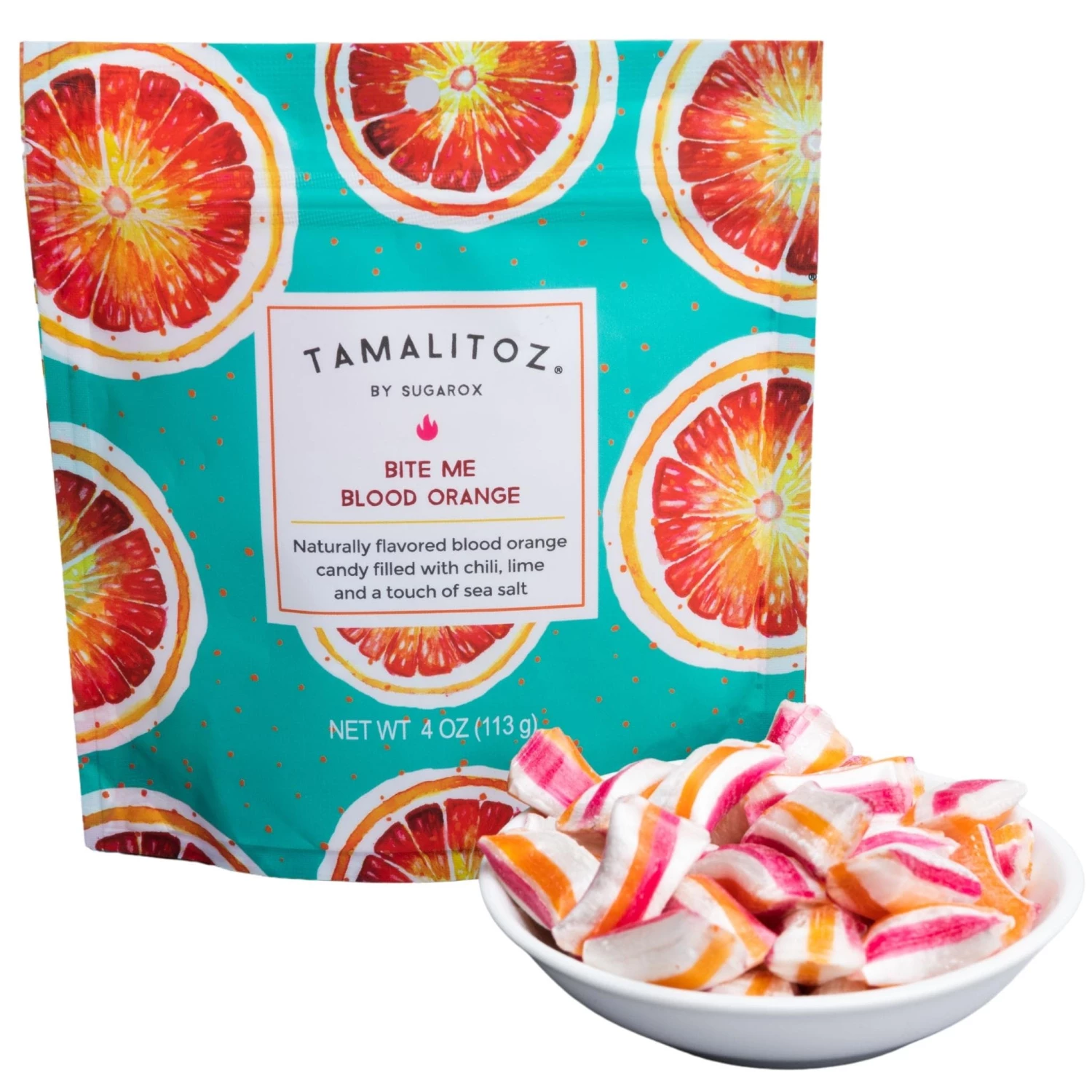 We think Blood Oranges are the fanciest members of the Orange family. Extra sweet and seductive, it must be the Italian sun drenched orchards of Sicily that makes them so delicious. Tamalitoz Bite Me Blood Orange combines the flavor of Italian Blood Oranges with our uniquely Mexican Chili, lime and sea salt center, taking you on a Jet Setting Flavor Fantasy from the Italian Mediterranean to the Riviera Maya all in the same bite!