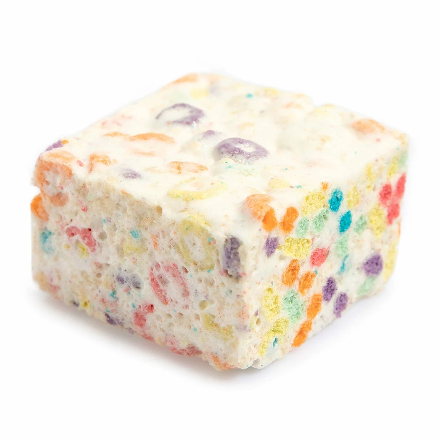 Rice crispies and fruity cereal rings bound together in the perfect rice crispy partnership with ooey-gooey marshmallows.