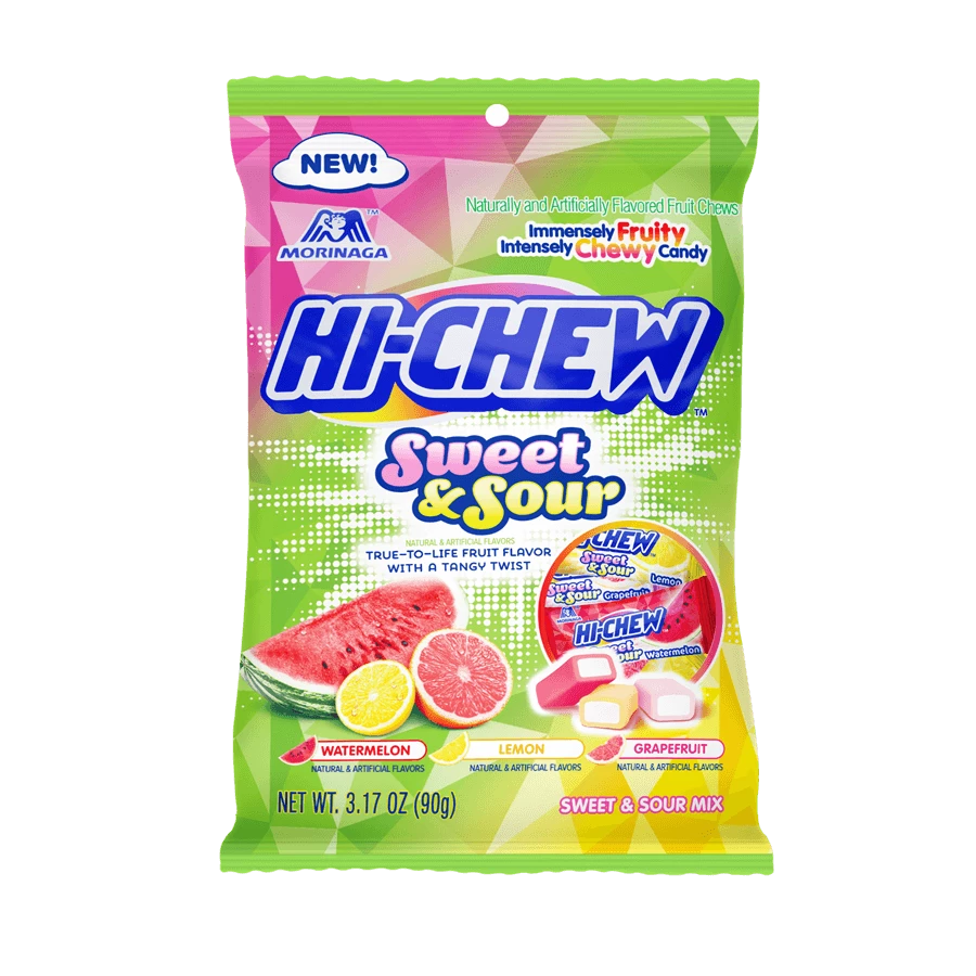 The Sweet & Sour bag offers true-to-life fruit flavor with a tangy twist! Includes a mix of Watermelon, Grapefruit, and Lemon.