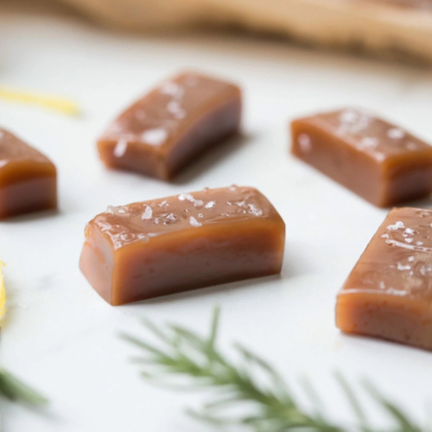 Addictingly soft and chewy caramel pieces that melt in your mouth in a freshly baked lemon pound cake flavor. These caramels have earned their place as a summer-time favorite.