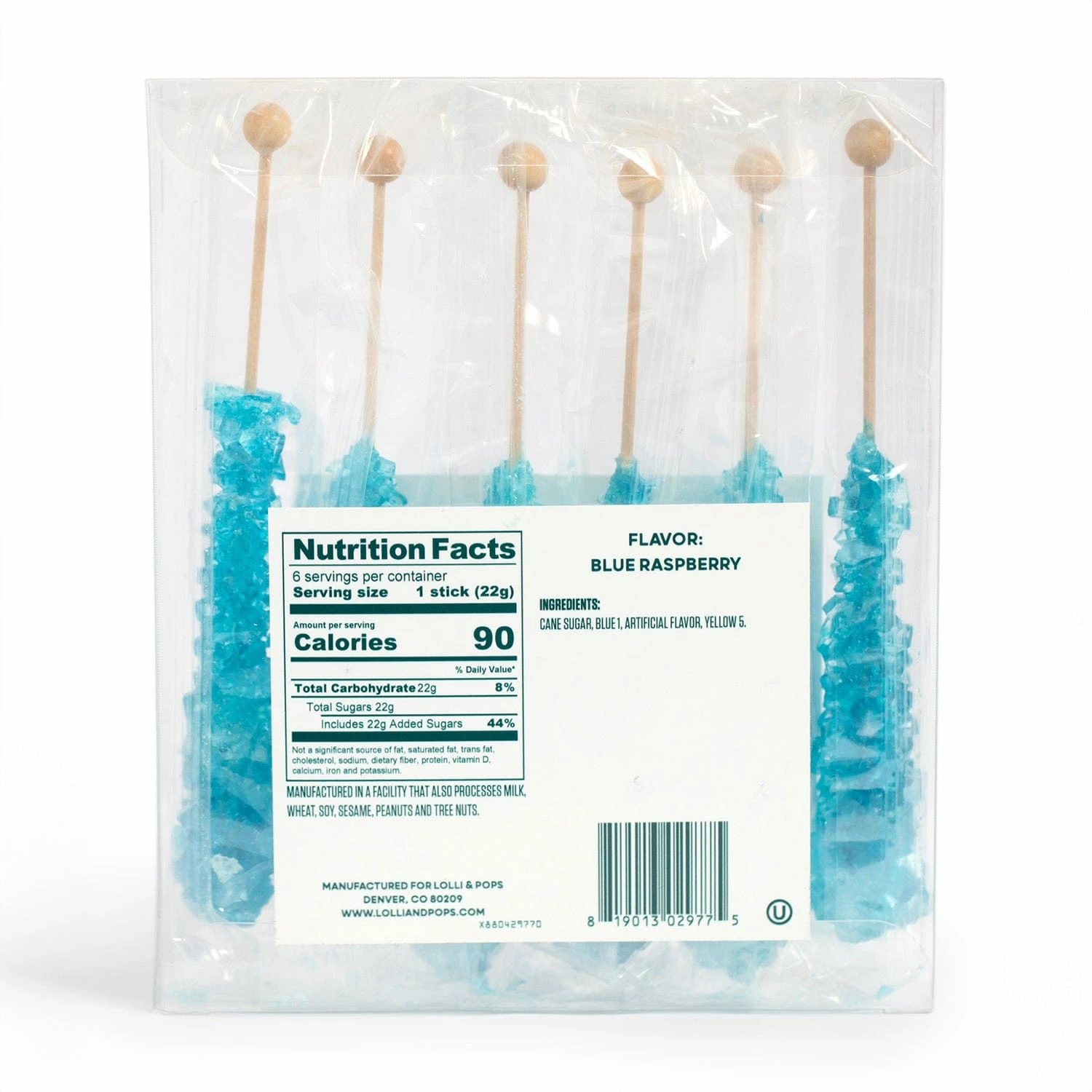 Sweet sugar crystals, rich blueberry flavor. You could say that this candy “rocks”! One bite, and you’ll remember why rock candy is such a sweet tooth classic. Comes in a pack of 6.