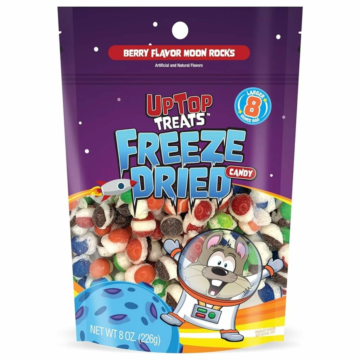 Berry punch, strawberry, melon berry, wild cherry, and raspberry flavors — now with a freeze dried, space food, crunchy twist!